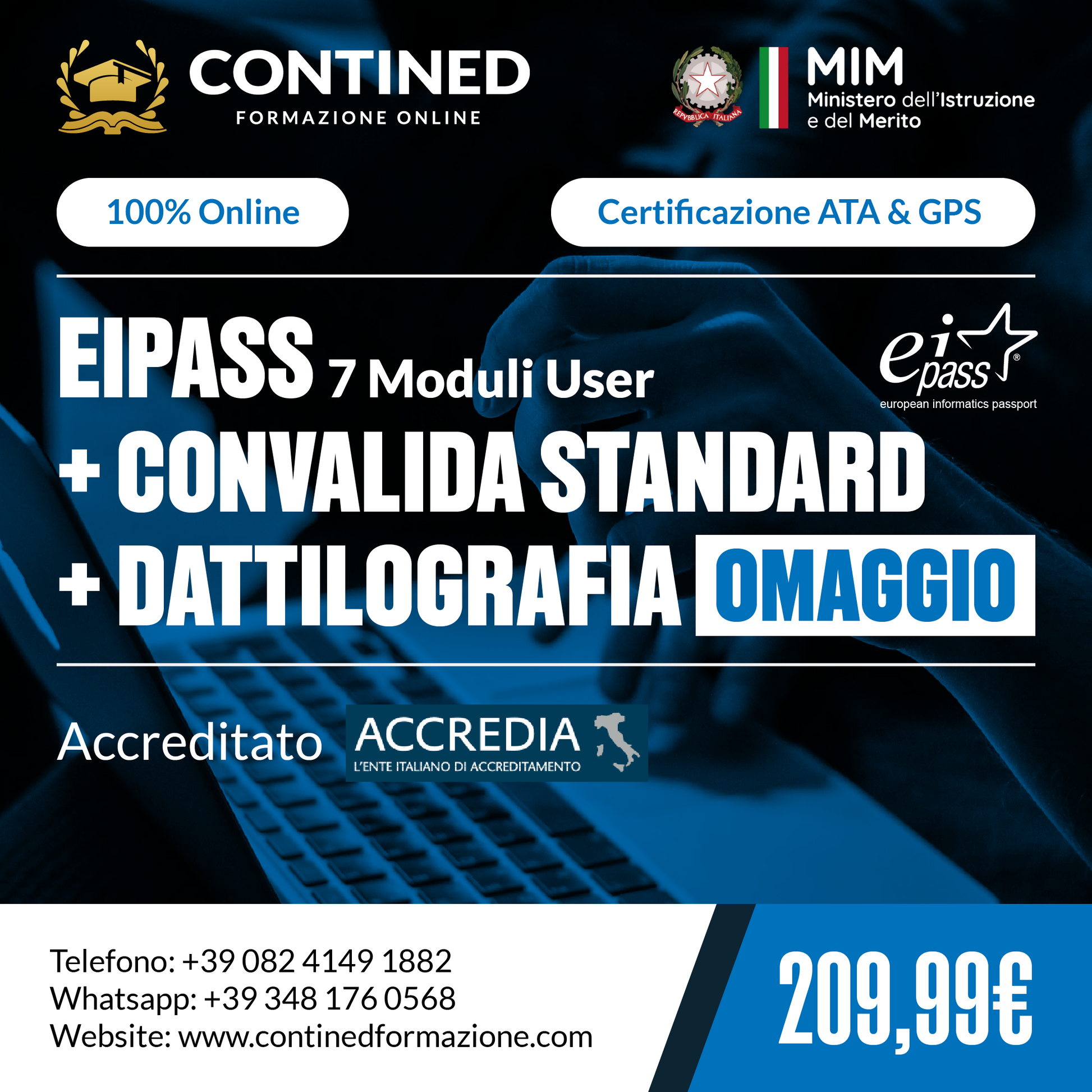 EIPASS 7 Moduli User + Convalida Standard + Dattilografia Omaggio